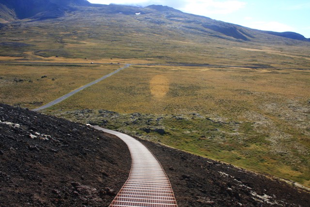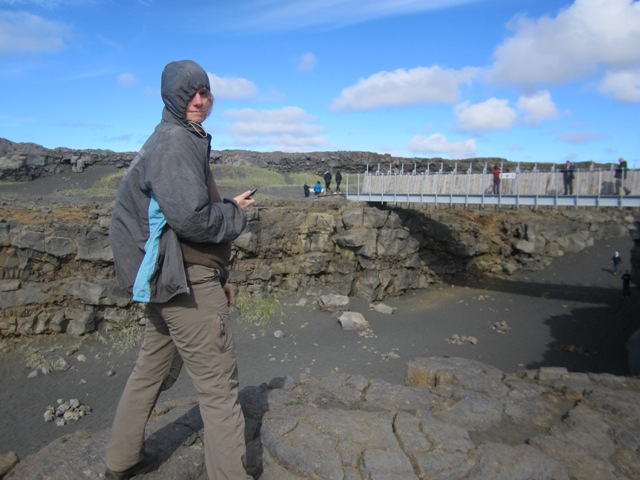 Következő megállónk a Két földrész híd. A felszínen lévő tektonikus hasadékvölgy egyik fele geológiailag eurázsiai eredetű, a másik oldal észak-amerikai származású, ezt kötötték össze egy gyalogbürüvel. Néhány lépéssel és némi fantáziával kontinensnyi távolságot tehetünk meg.