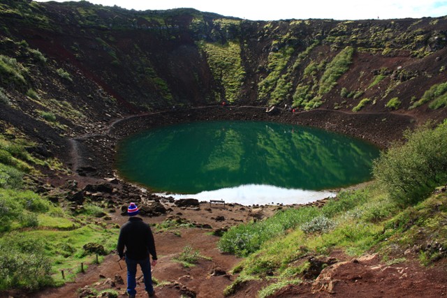 Következő látnivalónk a kb. 6000 éves Kerið kaldera mélyülete. Az 55 méter mély, szabályos kráterben türkiz tó vize hullámzik és a környék látványa is nagyszerű. A közeli Seydishólar kráterek pedig vöröses színükkel bűvölnek el.