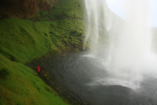 Elsőként egy különleges vízeséshez tartunk. A Seljalandsfoss jellemzője, hogy körbejárható: bemehetünk a sziklapárkányról lezúduló vízfüggöny mögé!