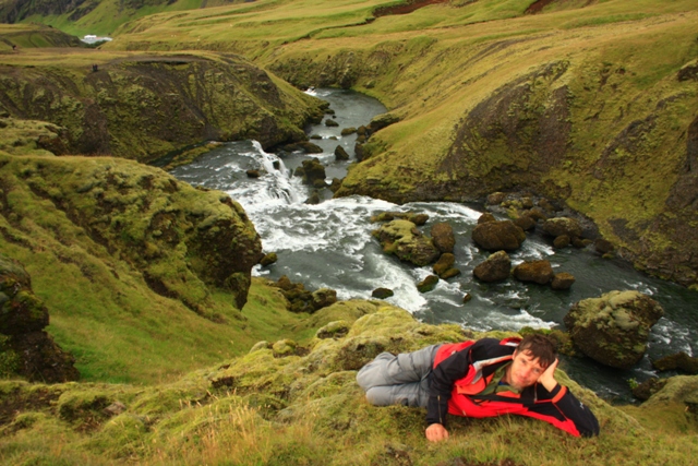 A közeli Gjáin patakvölgyében rövid túrát teszünk, a terület varázslatos kis ékkő a kietlen, fekete hamufelszínhez képest: vegetációs időszakban a zöldellő hegyoldalak vadvirágoktól tarkállanak a nedves környezetben, de tél végén is nagyon mutatós.