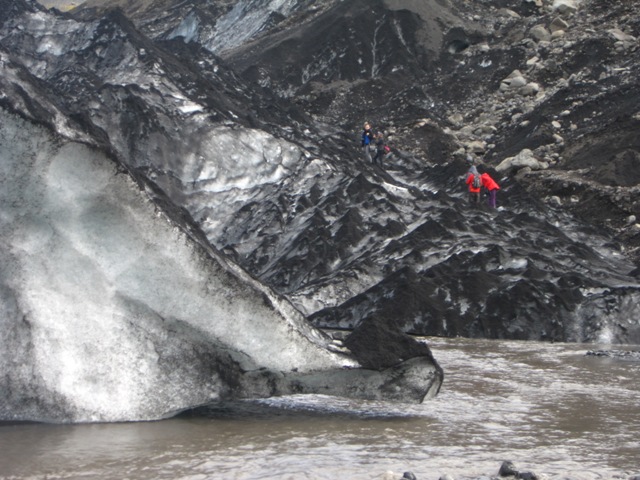 A Heklát megkerülve Izland déli partvidékéhez tartunk. A térség az Eyjafjallajökull és a Mýrdalsjökull jégsapkák előtere, amelyekre jó rálátást kapunk útközben is. A több 100 méter vastagságban, állandóan jéggel borított területekről valamint az izlandi Felföldről lefolyó vizek jelentős mennyiségű vulkáni hordalékot szállítanak, amit a parti sávban terítenek szét, növelve ezzel a sziget területét. A nagy nedvességtartalmú finom kőzetaprólék több kilométer szélességben sajátos fekete tengerpartot, folyamatosan hízó olvadékvíz-síkságot alkot.
