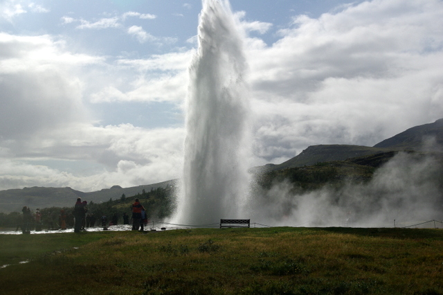 A névadó gejzír már inaktív, de mellette a Strokkur (Köpülő) kb. 10 percenként akár 20-30 méterre is kilövell. A hangosan felszökő vízoszlop látványa és élménye mellett a geotermikus mező több más érdekes jelenségét is megfigyeljük. A forró víz, különböző alakú és méretű üregeken át hőforrások és fortyogók formájában kerül a felszínre, szintén hanghatásokkal és gőzfelhők kíséretében.